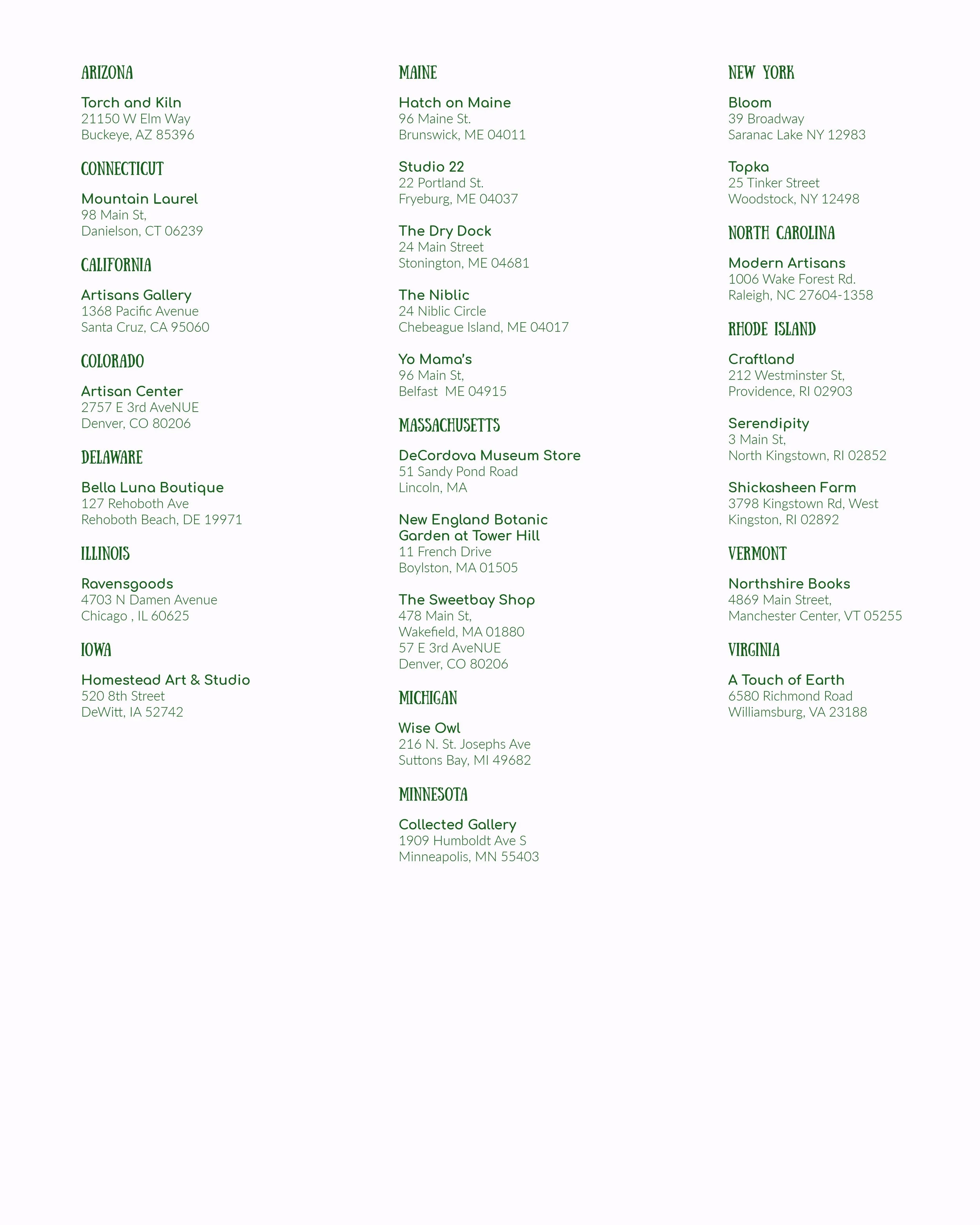 Here are some amazing retail shops that carry my work…